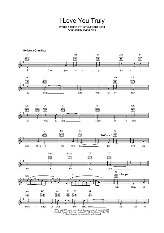 Digital Sheet Music for I Love You Truly by Bing Crosby scored for Lead Sheet; id:378511