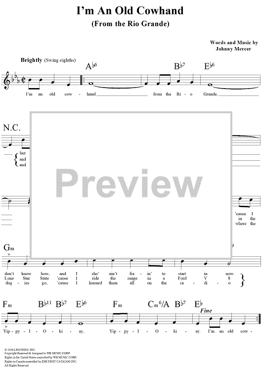 Digital Sheet Music for I'm an Old Cowhand (From the Rio Grande) by Johnny Mercer, Bing Crosby, Jimmy Dorsey, Roy Rogers scored for Lead Sheet; id:109822