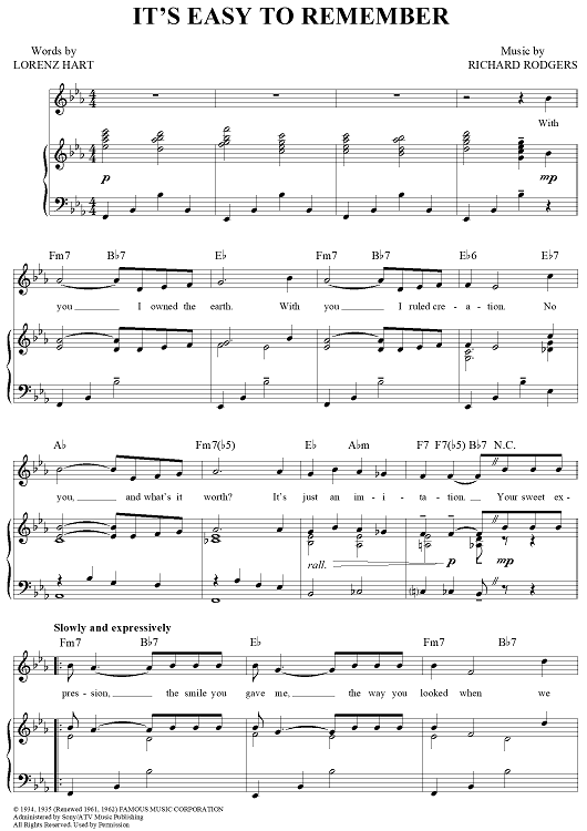 Digital Sheet Music for It's Easy to Remember by Bing Crosby, Richard Rodgers, Lorenz Hart scored for Piano/Vocal/Chords; id:170144