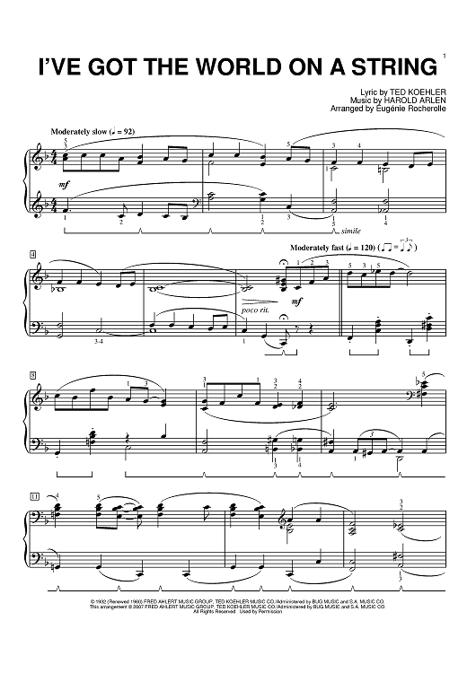 Digital Sheet Music for I've Got The World On A String by Harold Arlen, Frank Sinatra, Bing Crosby, Ted Koehler, Cab Calloway, Michael Buble, Dick Hyman, Eugénie R. Rocherolle scored for Piano; id:397488
