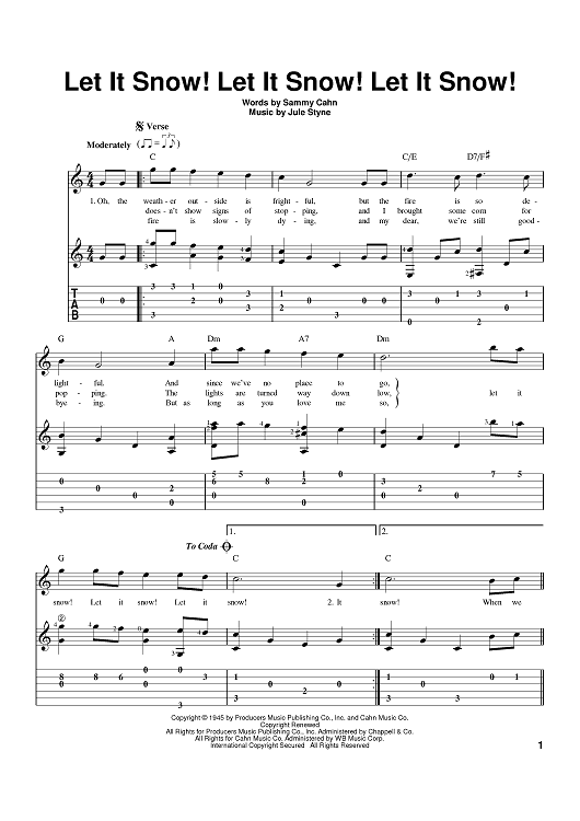 Digital Sheet Music for Let It Snow! Let It Snow! Let It Snow! by Jule Styne, Sammy Cahn, Bing Crosby, Dean Martin, Jessica Simpson, Vaughn Monroe, Michael Buble scored for Easy Guitar Tab; id:401584