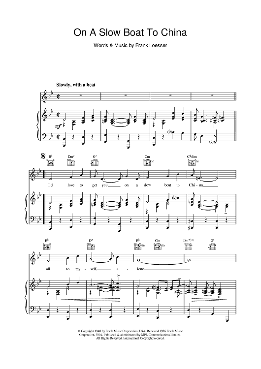 Digital Sheet Music for On A Slow Boat To China by Bing Crosby, Frank Loesser scored for Piano/Vocal/Chords; id:375791