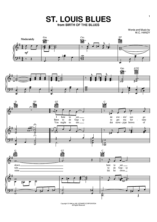 Digital Sheet Music for St. Louis Blues by Bessie Smith, Louis Armstrong, Bing Crosby, Duke Ellington, Billie Holiday, Django Reinhardt, W. C. Handy scored for Piano/Vocal/Chords; id:368288