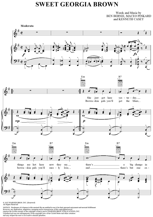 Digital Sheet Music for Sweet Georgia Brown by Louis Armstrong, Bing Crosby, Ben Bernie, Maceo Pinkard, Kenneth Casey scored for Piano/Vocal/Chords; id:151642