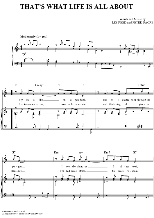 Digital Sheet Music for That's What Life Is All About by Bing Crosby, Les Reed, Peter Dacre scored for Piano/Vocal/Chords; id:446928