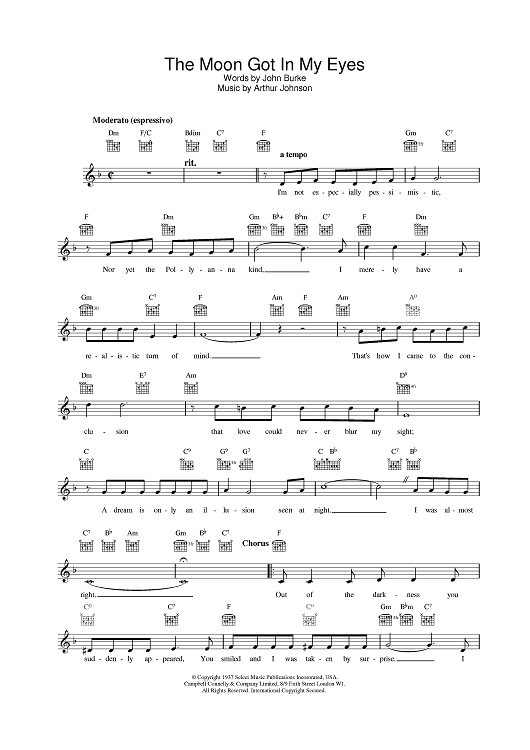 Digital Sheet Music for The Moon Got In My Eyes by Bing Crosby scored for Lead Sheet; id:375502