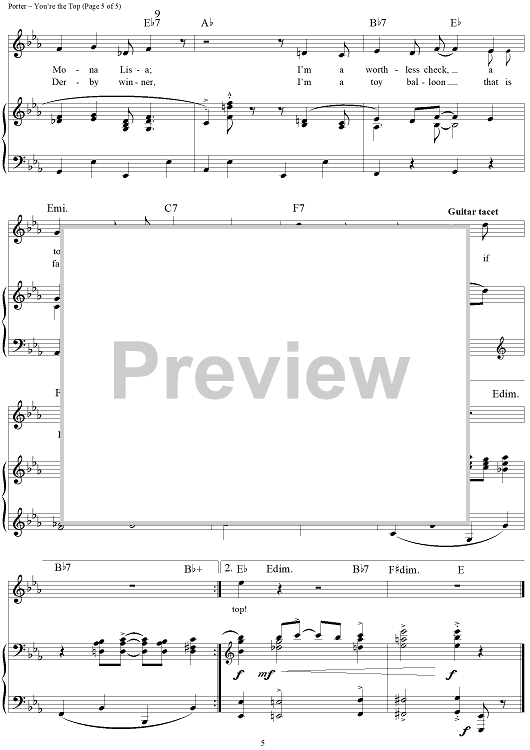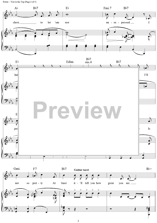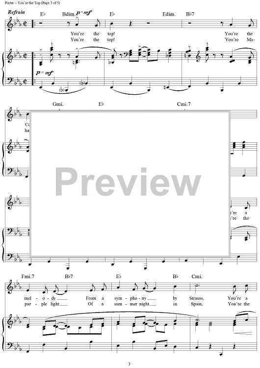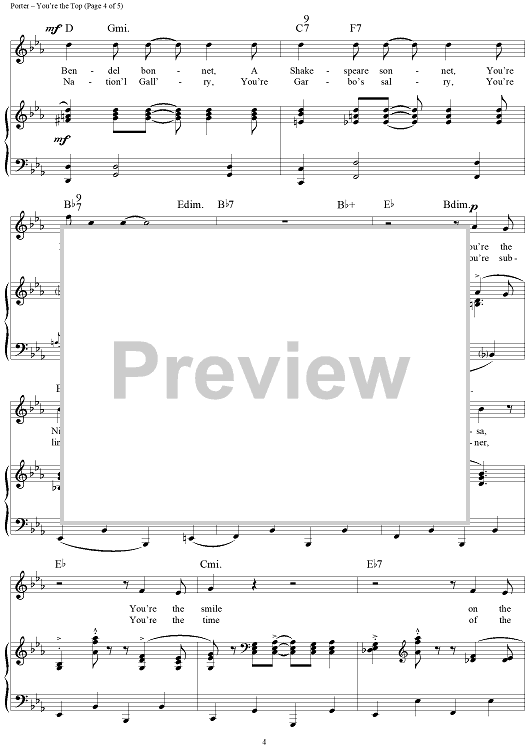 Digital Sheet Music for You're the Top by Ethel Merman, Bing Crosby, Mitzi Gaynor, Cole Porter scored for Piano/Vocal; id:112184