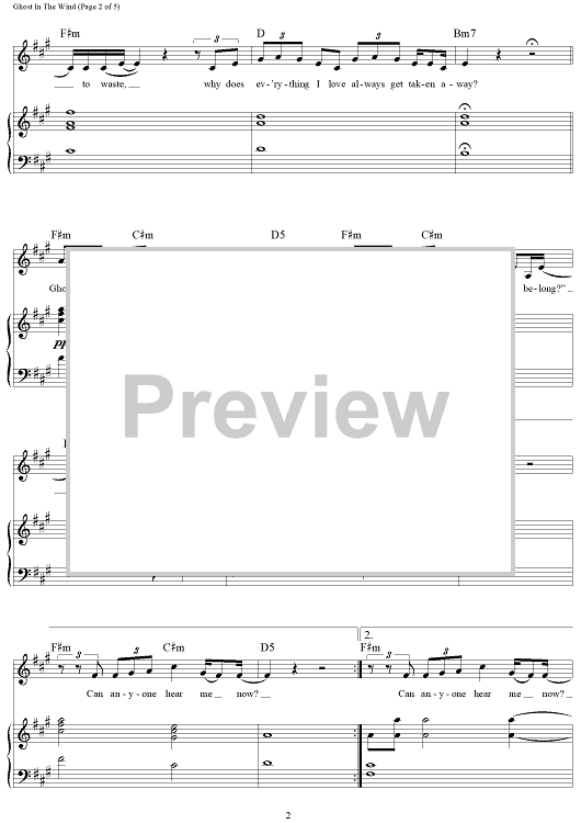 Digital Sheet Music for Ghost In The Wind by Birdy scored for Piano/Vocal/Chords; id:463312