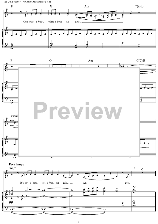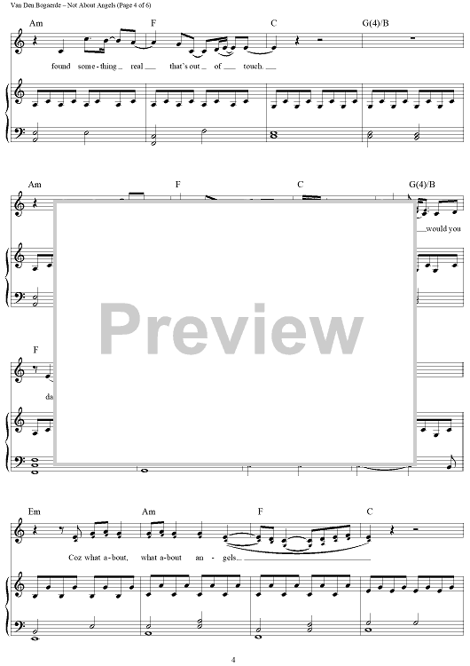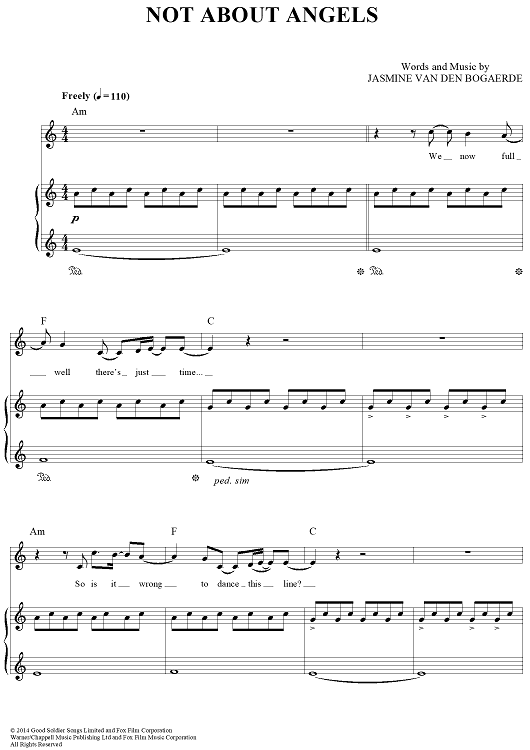 Digital Sheet Music for Not About Angels by Birdy scored for Piano/Vocal/Chords; id:442874