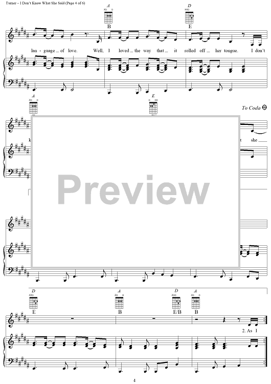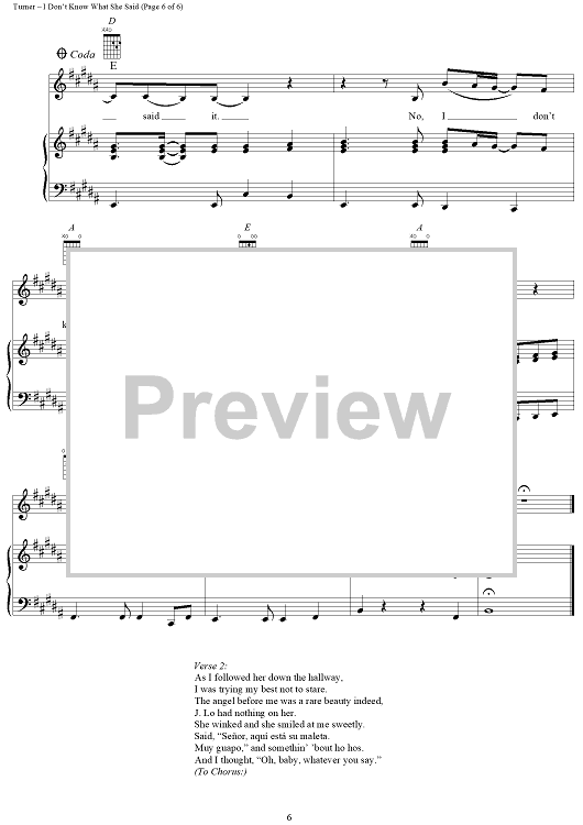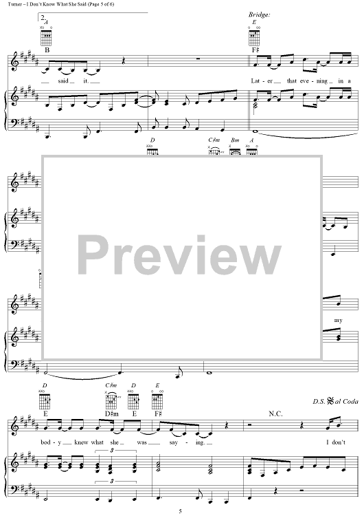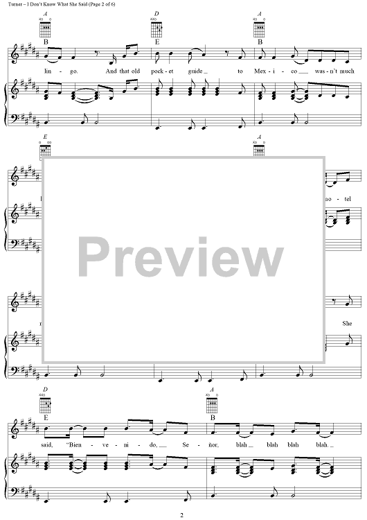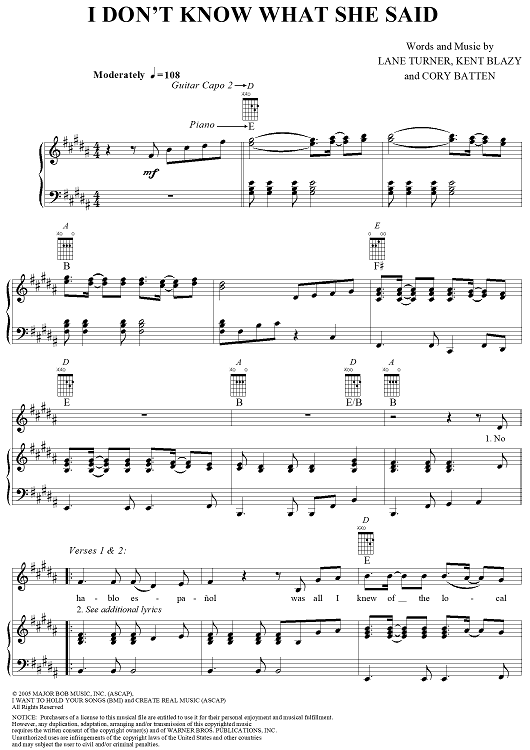 Digital Sheet Music for I Don't Know What She Said by Kent Blazy, Blaine Larsen, Lane Turner, Cory Batten scored for Piano/Vocal/Chords; id:359455