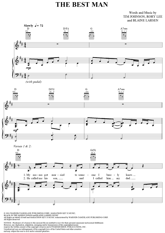 Digital Sheet Music for The Best Man by Rory Lee, Tim Johnson, Blaine Larsen scored for Piano/Vocal/Chords; id:314325