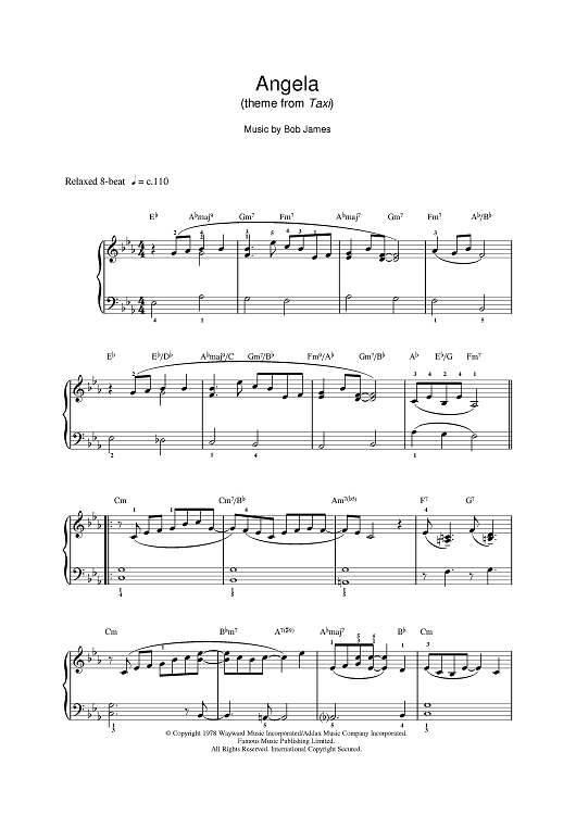 Digital Sheet Music for Angela by Bob James scored for Piano/Vocal/Chords; id:395657