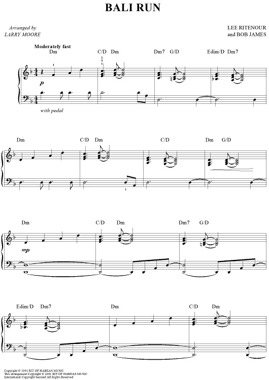 Digital Sheet Music for Bali Run by Bob James, Lee Ritenour, Larry Moore scored for Piano Solo; id:465460