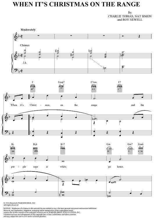 Digital Sheet Music for When It's Christmas on the Range by Bob Wills, Nat Simon, Charles Tobias, Roy Newell scored for Piano/Vocal/Chords; id:259916