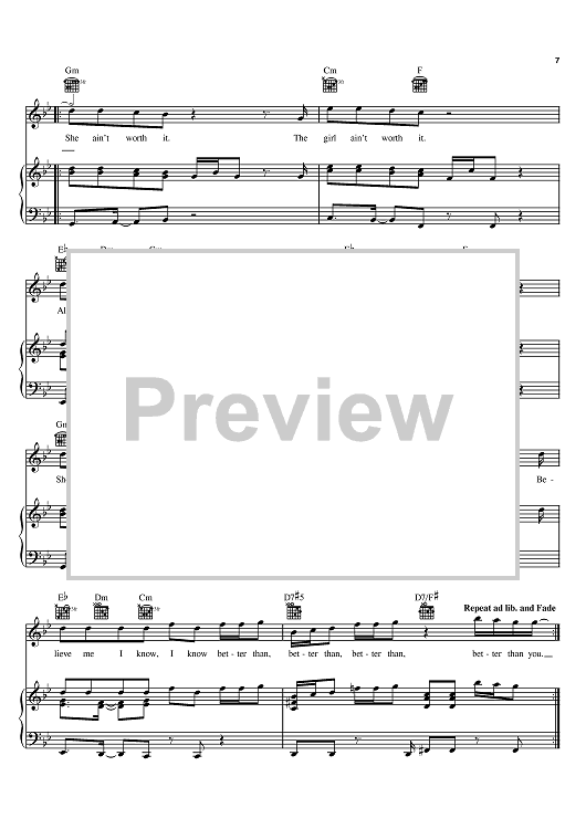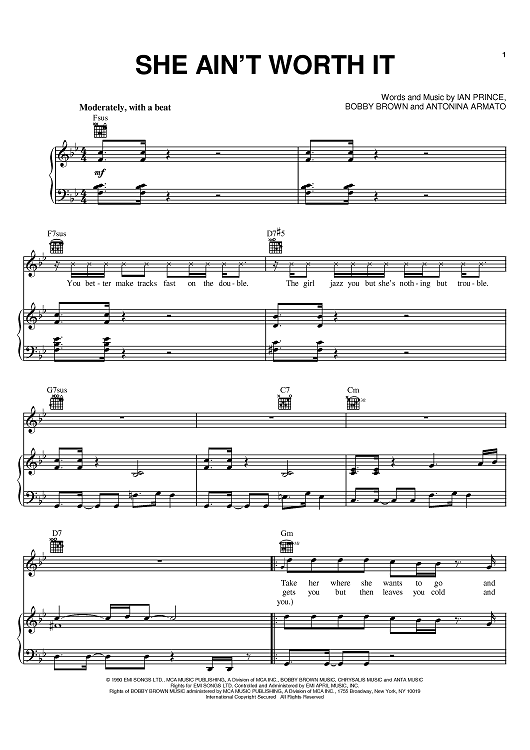 Digital Sheet Music for She Ain't Worth It by Antonina Armato, Glenn Medeiros, Bobby Brown, Ian Prince scored for Piano/Vocal/Chords; id:383039