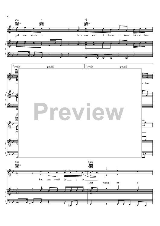 "She Ain't Worth It" Sheet Music by Glenn Medeiros