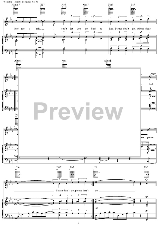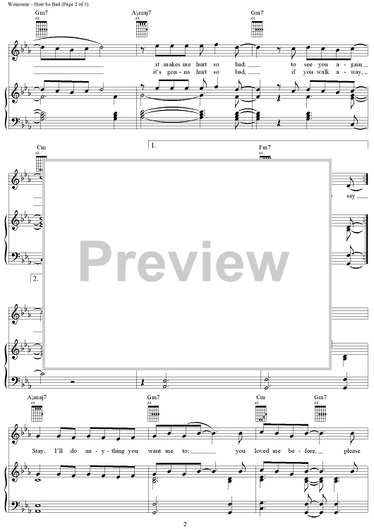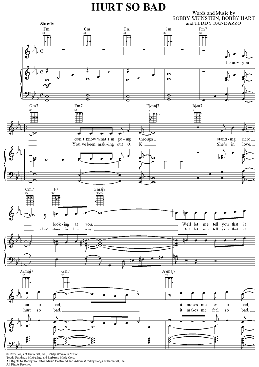 Digital Sheet Music for Hurt So Bad by Bobby Hart, Teddy Randazzo, Bobby Weinstein, Little Anthony & The Imperials scored for Piano/Vocal/Chords; id:289777
