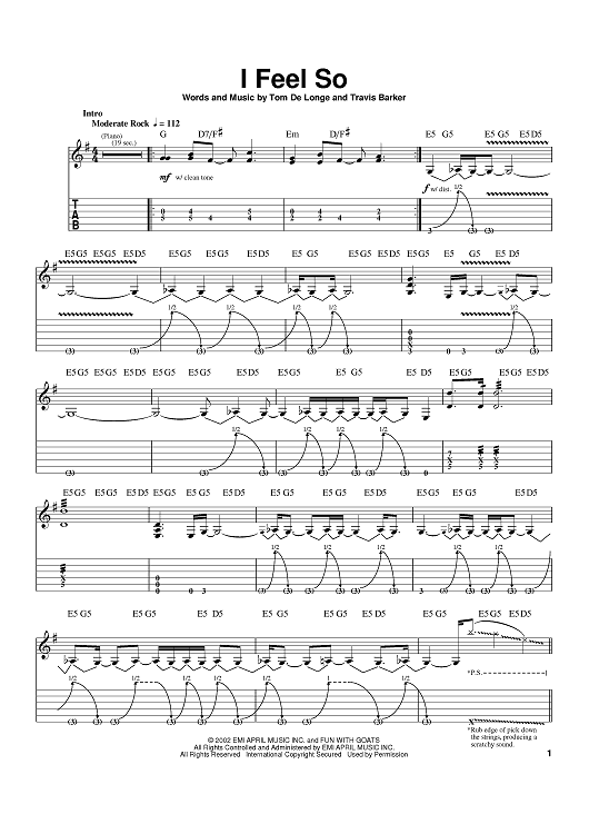 Digital Sheet Music for I Feel So by Travis Barker, Box Car Racer, Tom DeLonge scored for Guitar Tab; id:374232