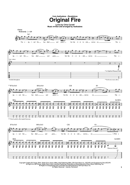 Digital Sheet Music for Original Fire by Audioslave, Tim Commerford, Chris Cornell, Tom Morello, Brad Wilk scored for Guitar Tab; id:392435