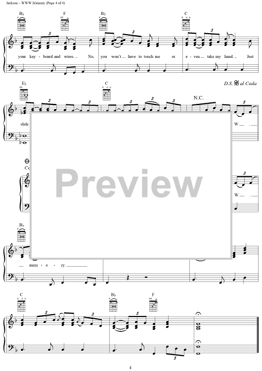 Digital Sheet Music for WWW.Memory by Charley Stefl, Gene Ellsworth, Al Jackson Jr, Bradley Rodgers scored for Piano/Vocal/Chords; id:288571