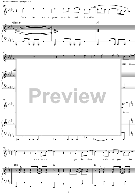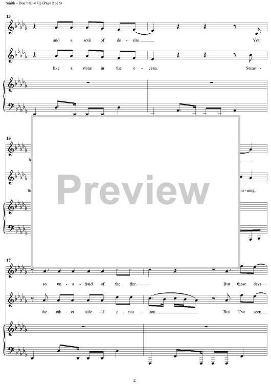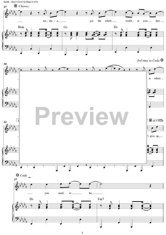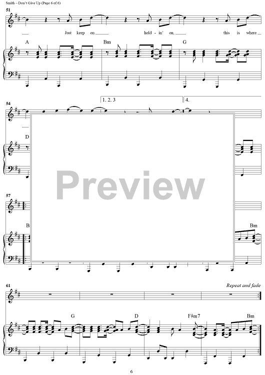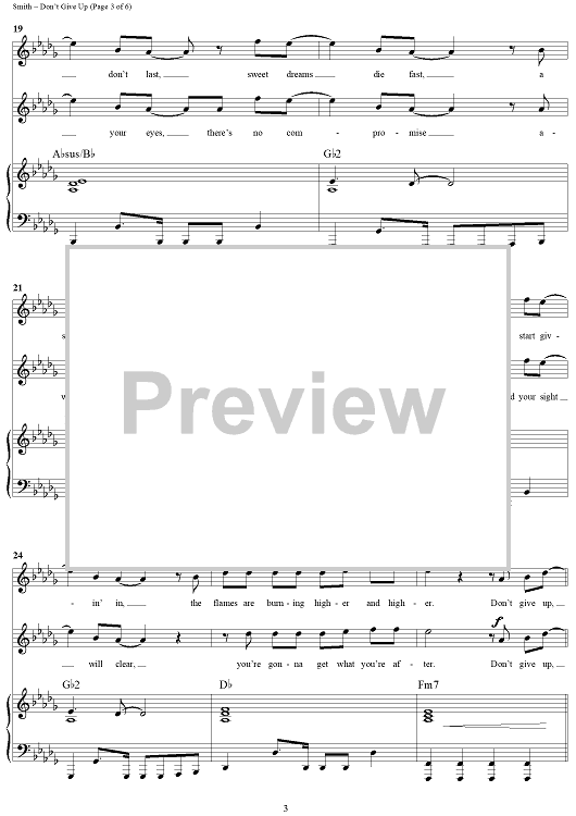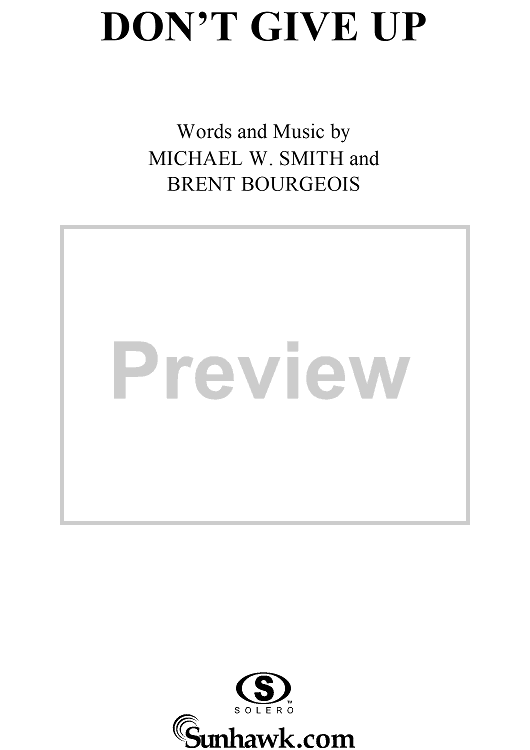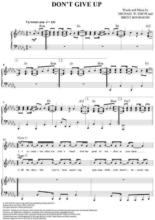 Digital Sheet Music for Don't Give Up by Michael W. Smith, Brent Bourgeois scored for Piano/Vocal/Chords; id:258296