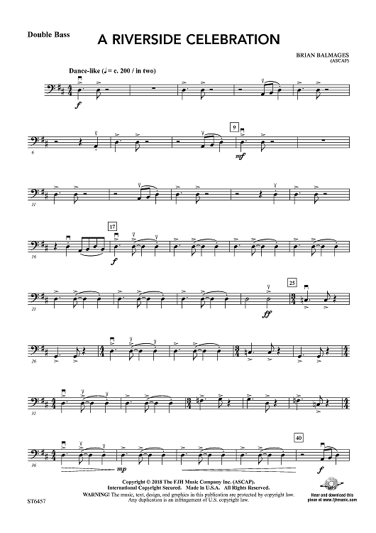 "A Riverside Celebration - Double Bass" Sheet Music by Brian Balmages