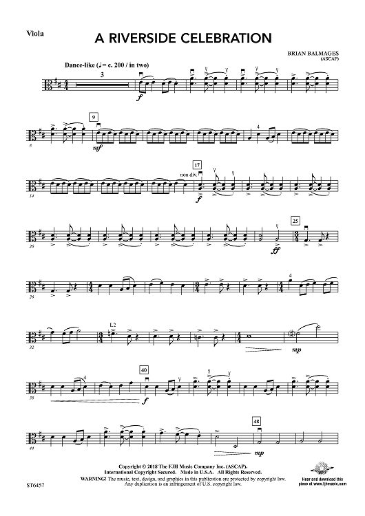 "A Riverside Celebration - Viola" Sheet Music by Brian Balmages
