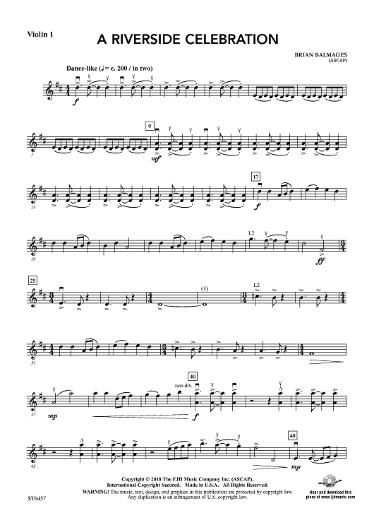 "A Riverside Celebration - Violin 1" Sheet Music by Brian Balmages