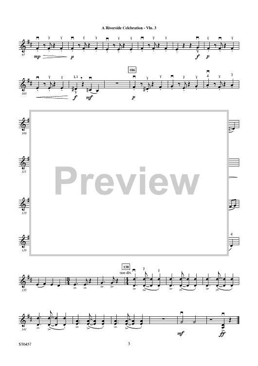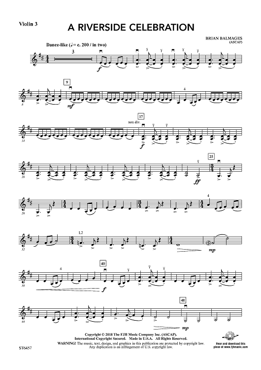 "A Riverside Celebration - Violin 3" Sheet Music by Brian Balmages