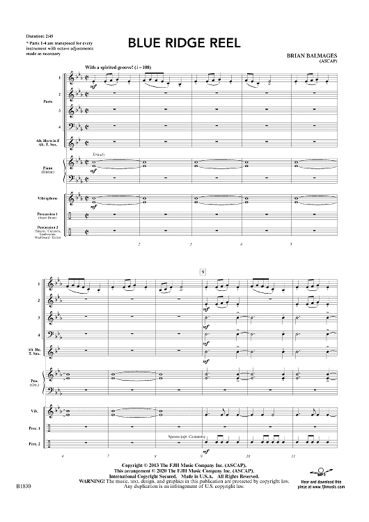 "Blue Ridge Reel - Score" Sheet Music by Brian Balmages