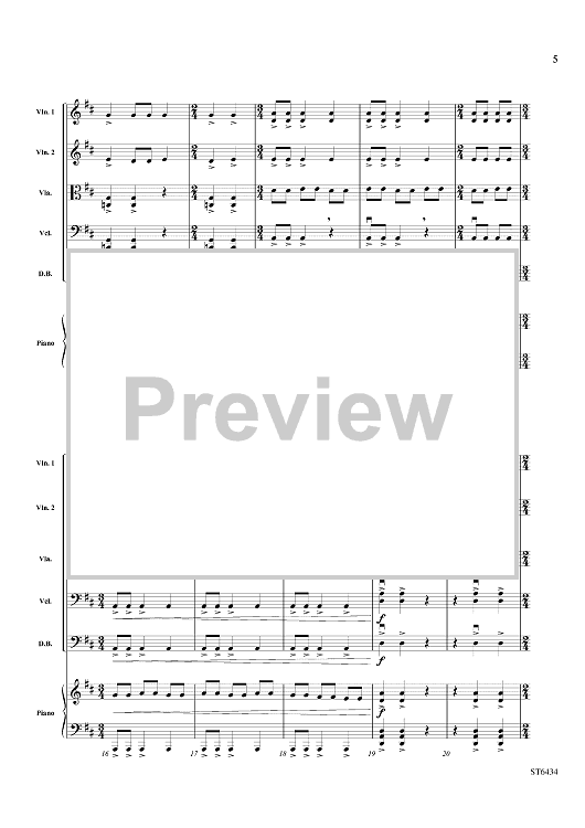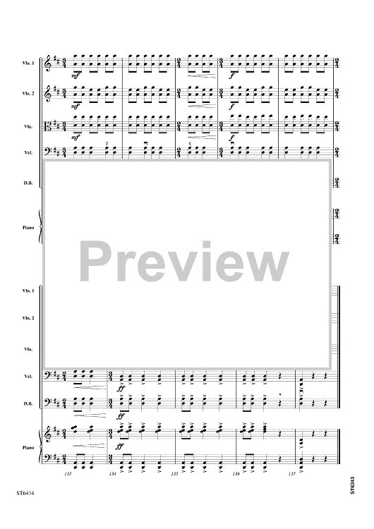 This aggressive mixed-meter work relies heavily on pulse and the mixed placement of accents to create exceptional momentum. The composer makes extensive use of simple double stops to create big layers of sound that contrast with lighter, more delicate moments. A powerhouse work for your next concert! (2:20)