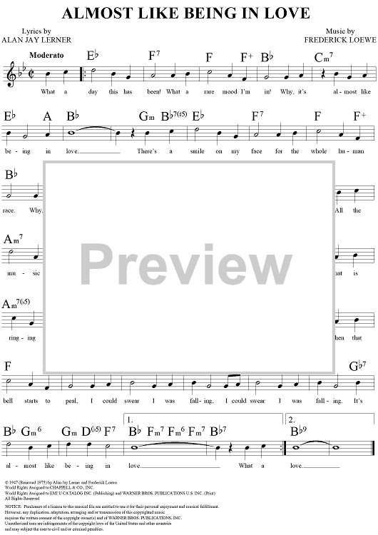 Digital Sheet Music for Almost Like Being In Love by Gene Kelly, Frederick Loewe, Alan Jay Lerner scored for Lead Sheet; id:109503