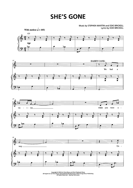 Digital Sheet Music for She's Gone by Edie Brickell, Steve Martin scored for Piano/Vocal/Chords; id:466711