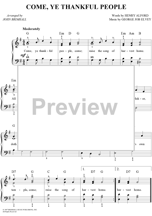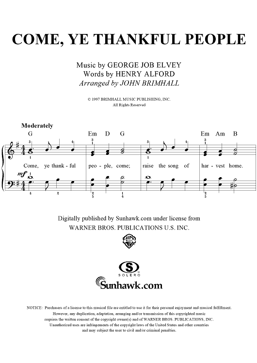 Digital Sheet Music for Come, Ye Thankful People by George J. Elvey, John Brimhall, Henry Alford scored for Easy Piano/Vocal; id:270463