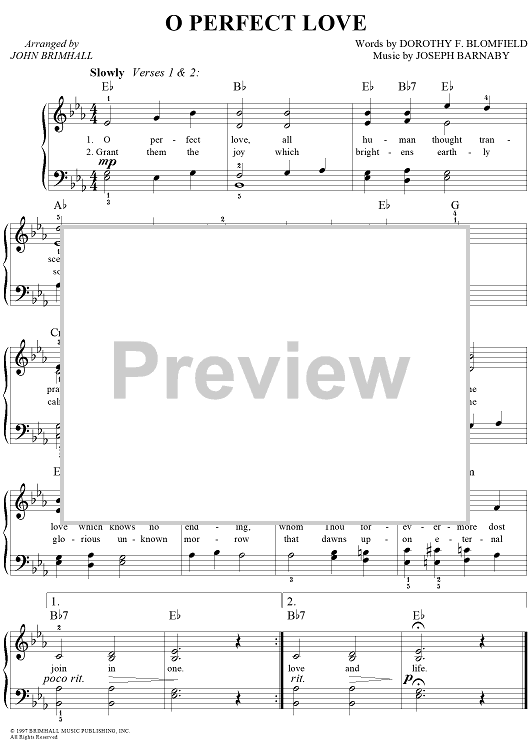 Digital Sheet Music for O Perfect Love by Joseph Barnaby, John Brimhall, Dorothy F. Blomfield scored for Easy Piano/Vocal; id:276212