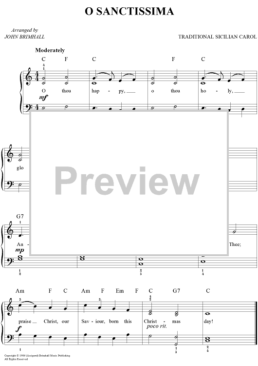 Digital Sheet Music for O Sanctissima by John Brimhall, Traditional Sicilian Carol scored for Easy Piano/Vocal/Chords; id:450559
