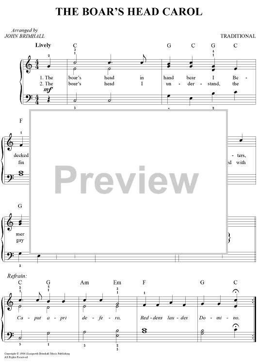Digital Sheet Music for The Boar's Head Carol by John Brimhall, Traditional scored for Easy Piano/Vocal/Chords; id:450563