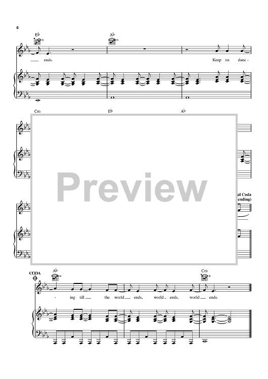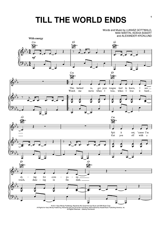 Digital Sheet Music for Till The World Ends by Max Martin, Alexander Kronlund, Kesha Sebert, Lukasz Gottwald, Britney Spears scored for Piano/Vocal/Chords; id:428744