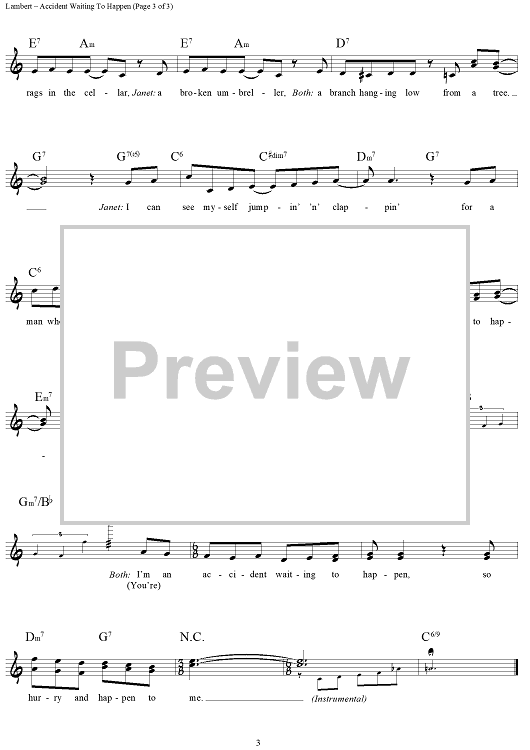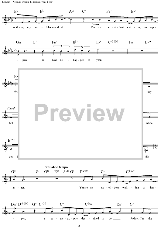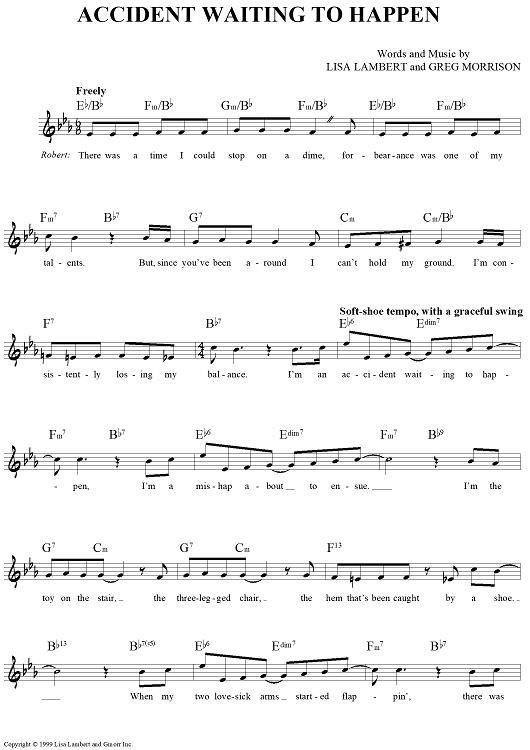 Digital Sheet Music for Accident Waiting To Happen by Lisa Lambert, Greg Morrison scored for Lead Sheet; id:442531