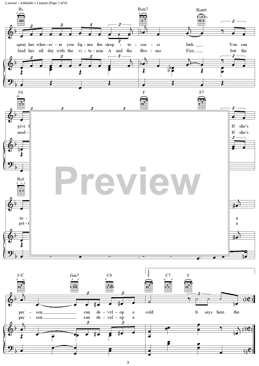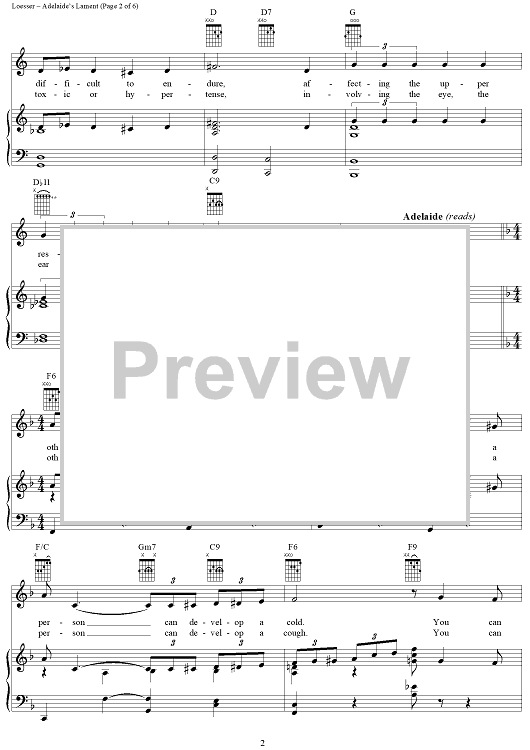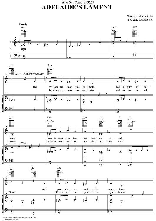 Digital Sheet Music for Adelaide's Lament by Frank Loesser scored for Piano/Vocal/Chords; id:405695
