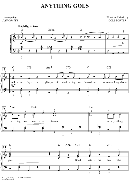 Digital Sheet Music for Anything Goes by Dan Coates, Cole Porter scored for Easy Piano/Vocal/Chords; id:456661