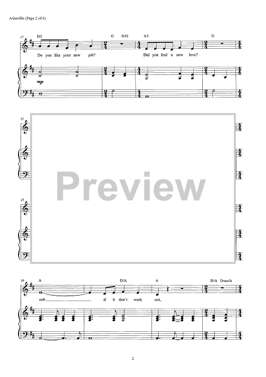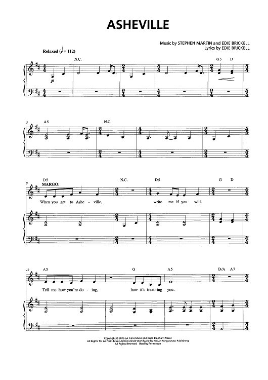 Digital Sheet Music for Asheville by Edie Brickell, Steve Martin scored for Piano/Vocal/Chords; id:466705