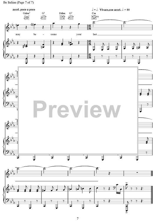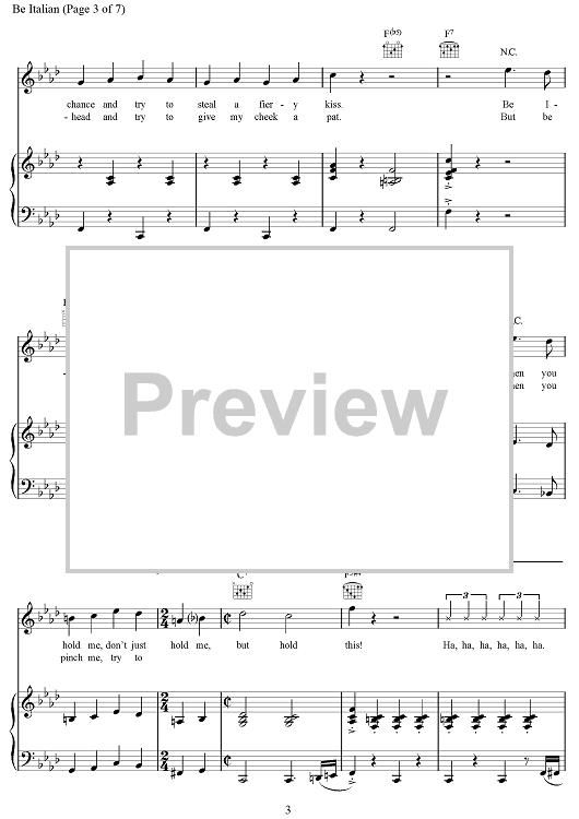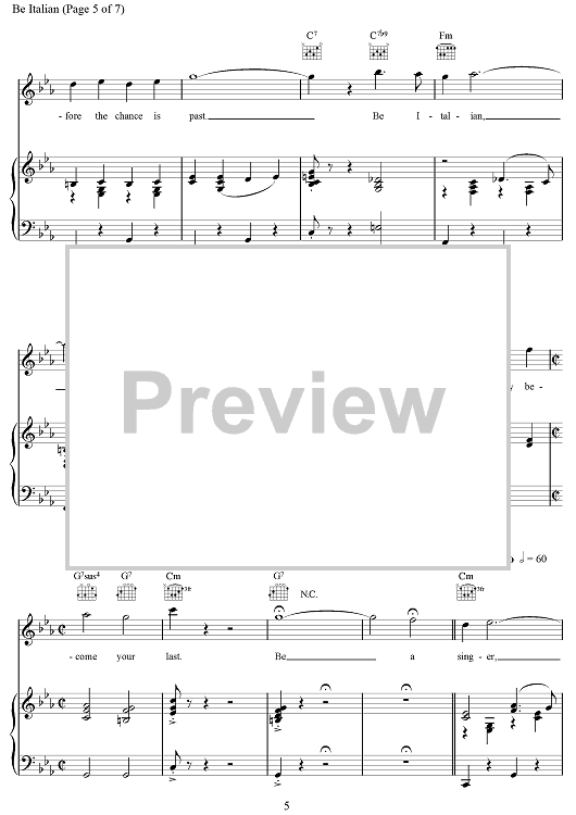 Digital Sheet Music for Be Italian by Maury Yeston scored for Piano/Vocal/Chords; id:499960