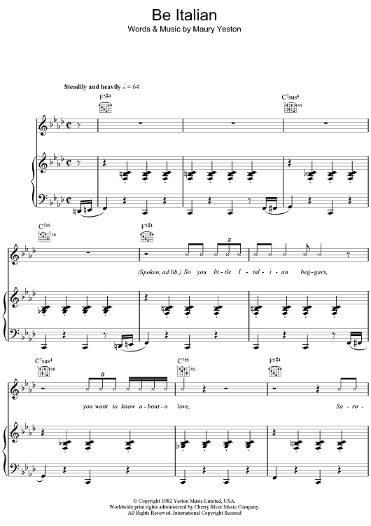 "Be Italian" Sheet Music by Maury Yeston