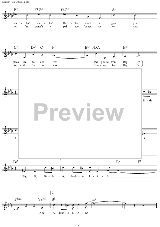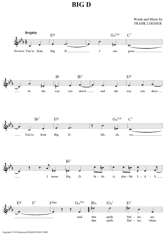 Digital Sheet Music for Big D by Frank Loesser scored for Lead Sheet; id:447261