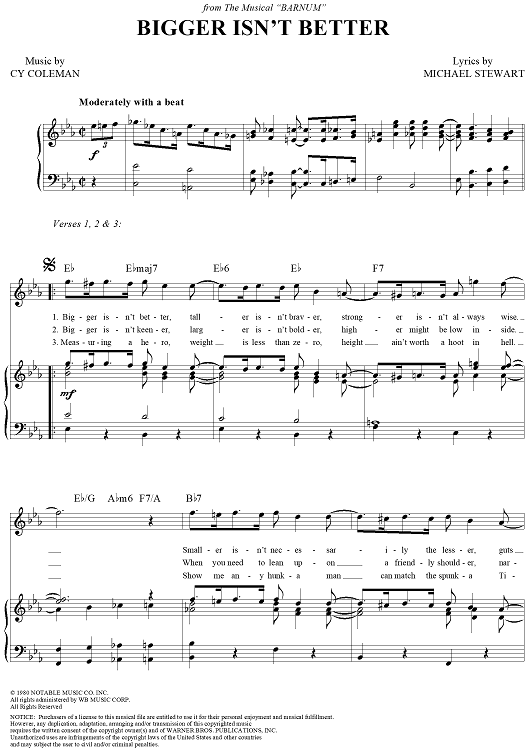 Digital Sheet Music for Bigger Isn't Better by Cy Coleman, Michael Stewart scored for Piano/Vocal/Chords; id:360539