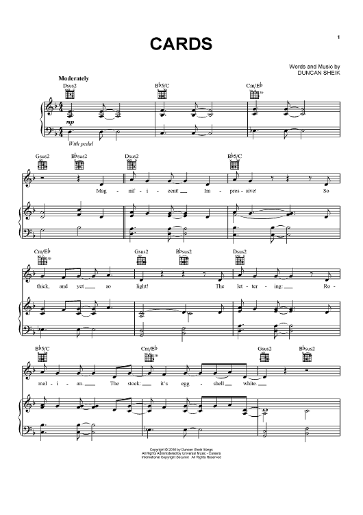 Digital Sheet Music for Cards by Duncan Sheik scored for Piano/Vocal/Chords; id:459875