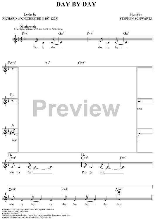 Digital Sheet Music for Day By Day by Stephen Schwartz, Richard of Chichester scored for Lead Sheet; id:444381