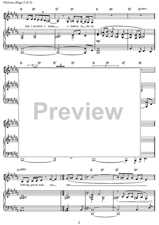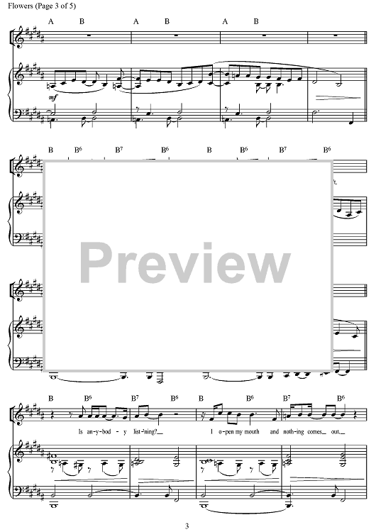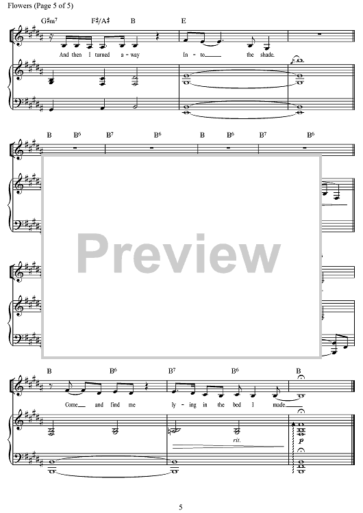 Digital Sheet Music for Flowers by Anaïs Mitchell, Michael Chorney, Todd Sickafoose, Liam Robinson scored for Piano/Vocal/Chords; id:497156