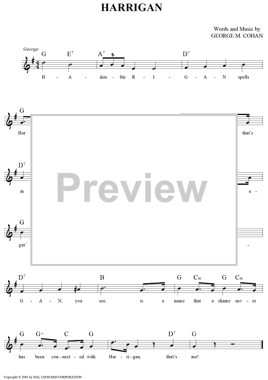 Digital Sheet Music for Harrigan by George M Cohan scored for Lead Sheet; id:444372